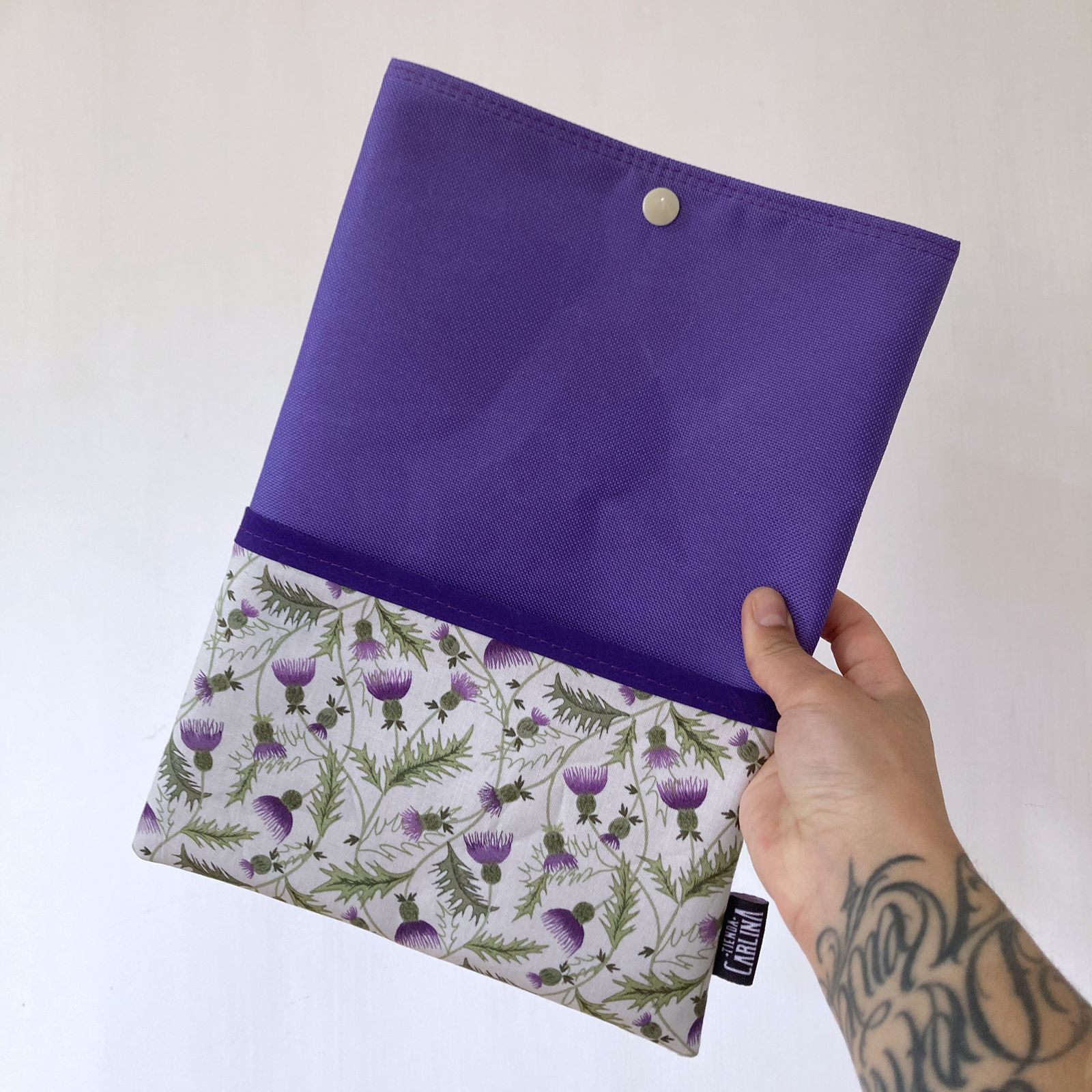 Funda para libros en tela estampada de la flor escocesa Thistle.